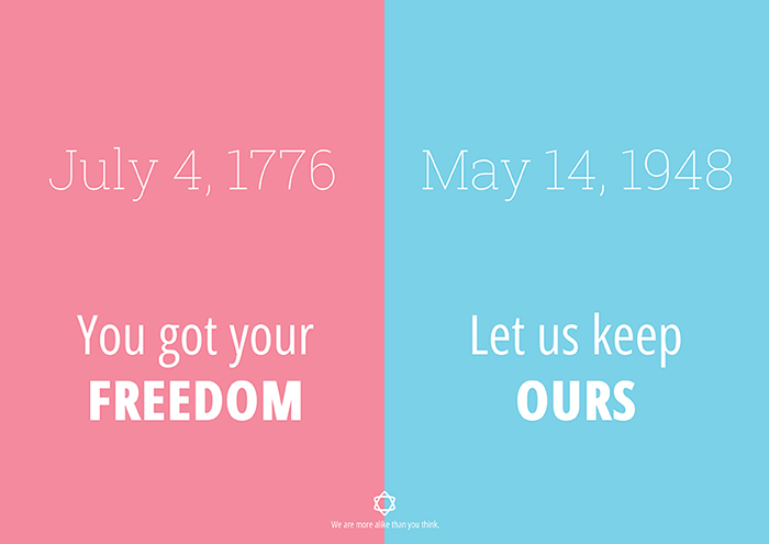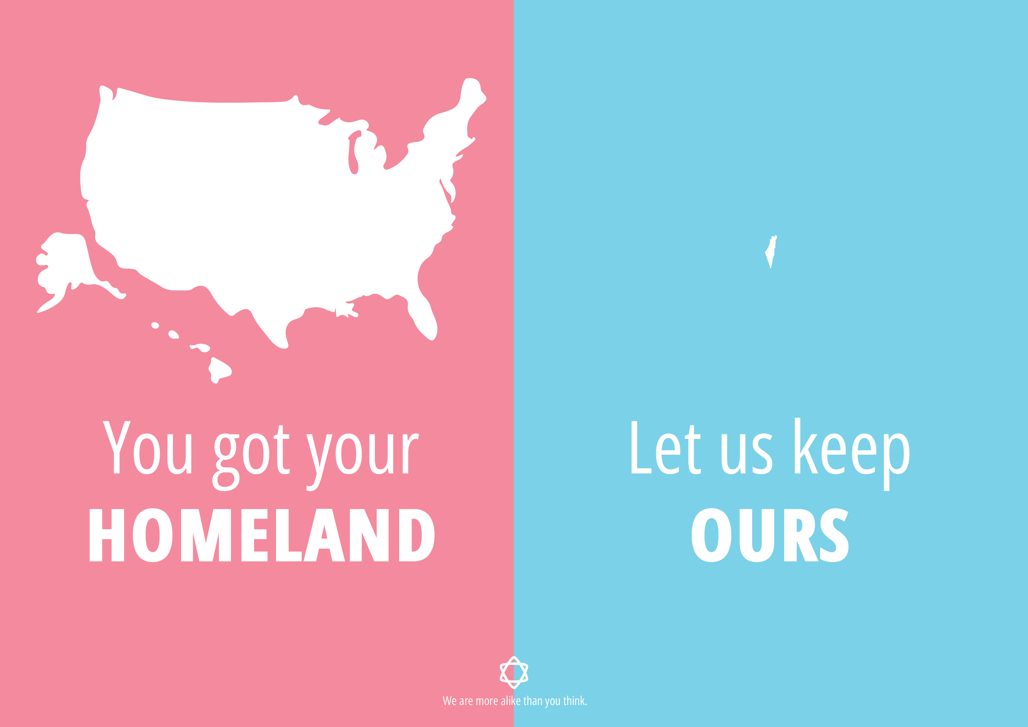 The last one puts into view the large scale of the United States against the measly piece of land that israel is. It also raises the follow question: 'If you have your land, why can't we have ours?'