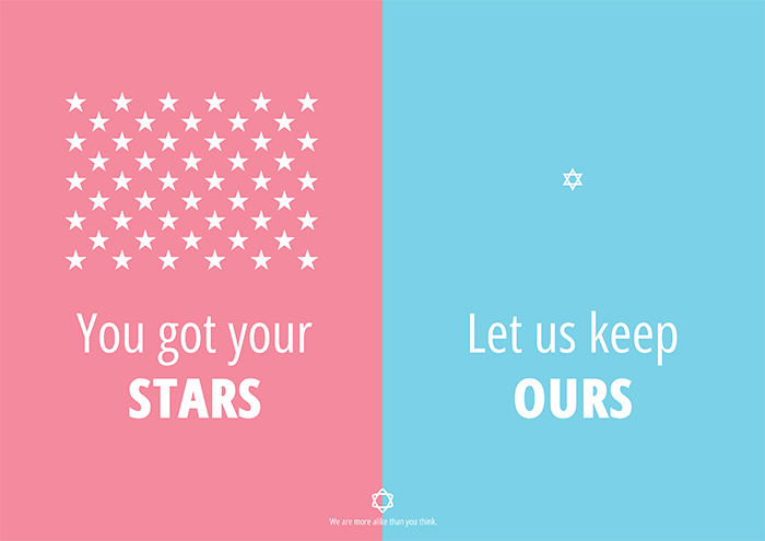 The first one is directed to the american land, the states. I took the 52 stars out of the USA flag, the very same stars that represent each state, and placed it in comparison to our single star, that represents our one and only state.